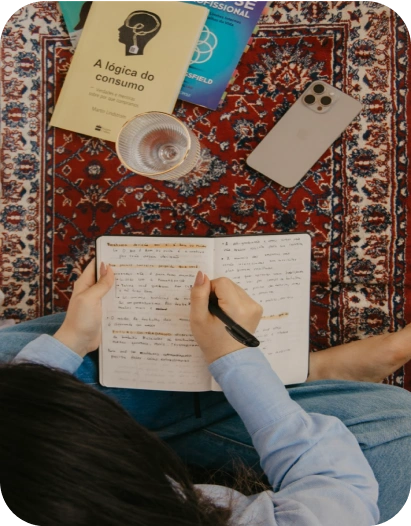 Você vai aprender a construir um método leve e real, que cabe na sua rotina e te mantém constante mesmo nos dias corridos.